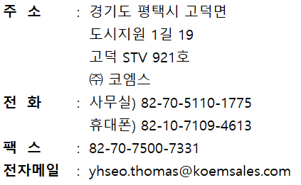 – 전자메일 : yhseo.Thomas@koemsales.com